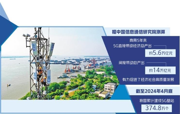 今年是5G商用的第五個年頭。5年來,全國所有地市級城區、縣城城區均實現網絡覆蓋;從基站設備到通信芯片再到手機終端,產業鏈整體實力不斷增強;在工業現場,5G機器視覺檢測將質檢效率提升60%……據中國信息通信研究院測算,5年來,5G直接帶動經濟總產出約5.6萬億元,間接帶動總產出約14萬億元,有力促進了經濟社會高質量發展。