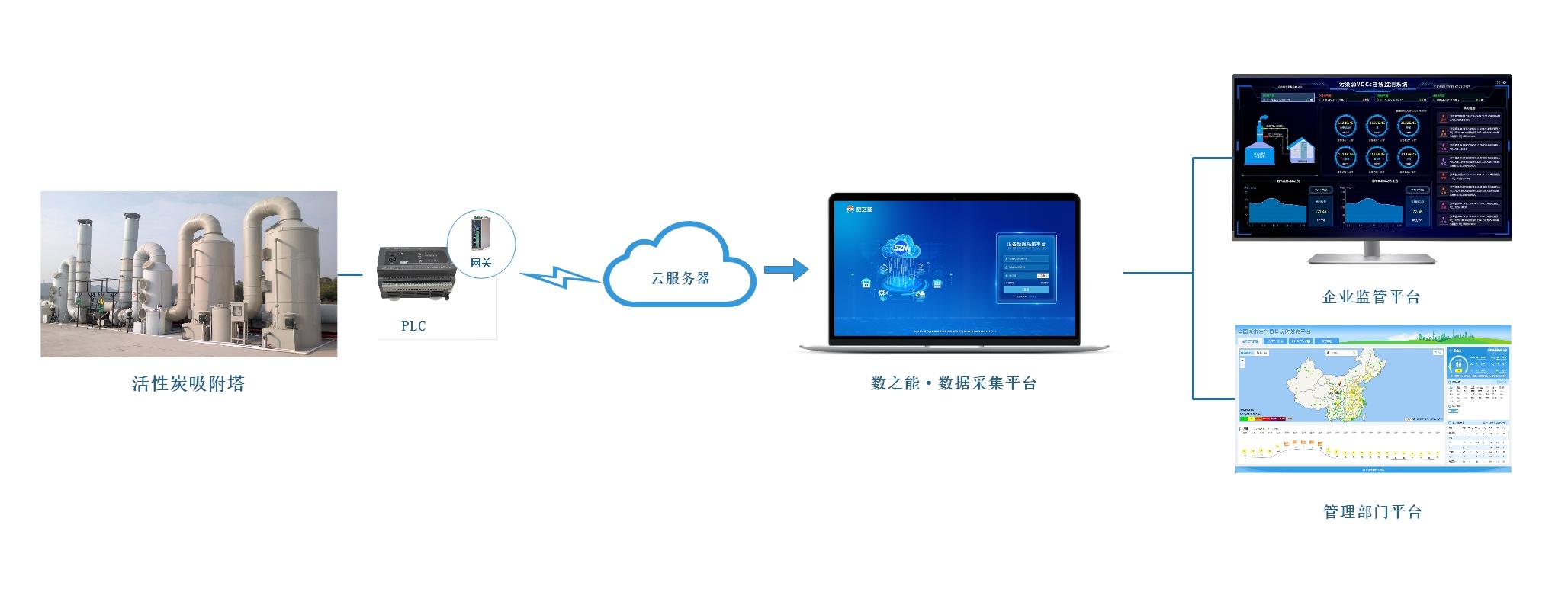 3、遠程監控:提供基于云端的監控管理功能,通過手機電腦,管理人員可以隨時隨時地了解活性炭吸附塔運行狀態與參數變化。