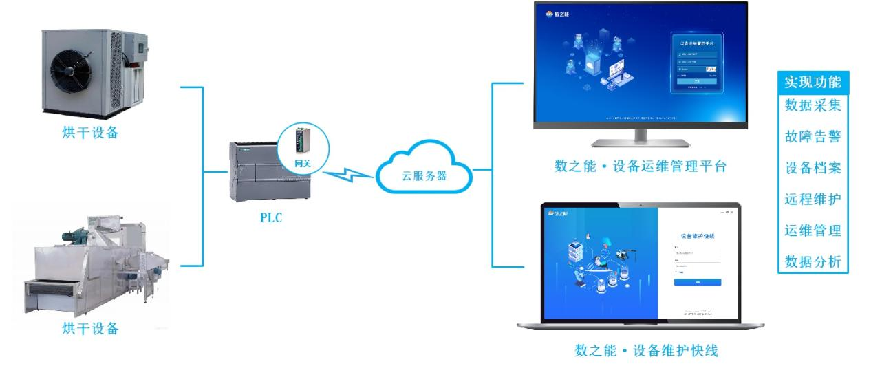 各種類型的烘干設備分布在全國各地,不利于企業進行集中監控管理,難以進行統一管理和智能運維,企業有限的人員物力無法得到合理分配。