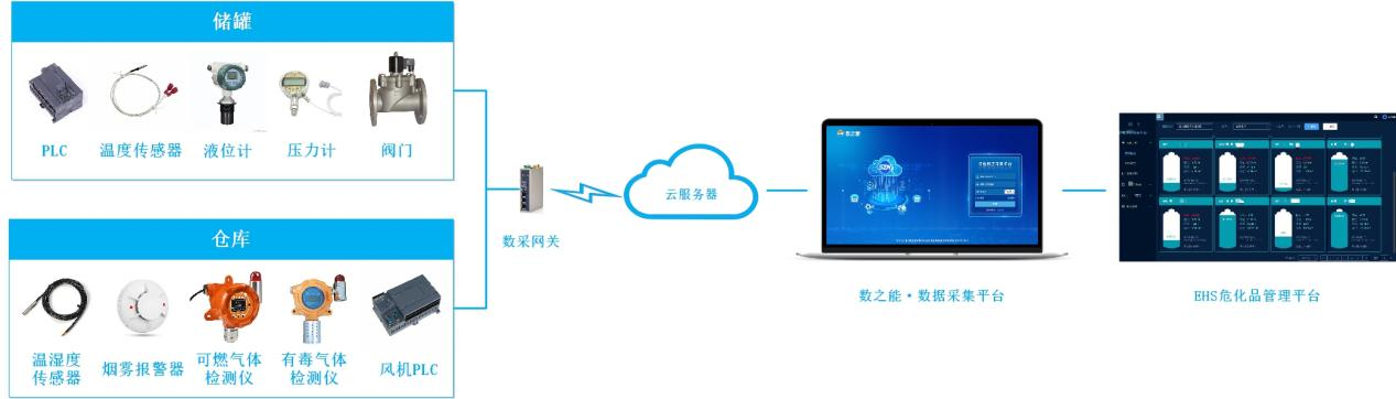 對此,數之能提供危化品倉庫在線監測自動預警系統方案,旨在加強對儲罐設備與倉儲環境的監控管理水平與應急響應能力,以防范化解可能出現各種意外事故,更好地保障人民群眾的生命財產安全。