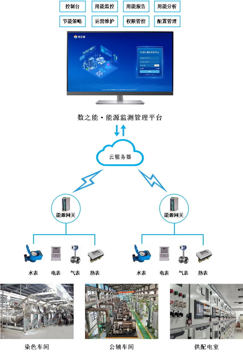 工信部等六部門印發(fā)《紡織工業(yè)數(shù)字化轉(zhuǎn)型實(shí)施方案》指出:加快工業(yè)互聯(lián)網(wǎng)部署;釋放數(shù)據(jù)要素價值;深化數(shù)據(jù)全生命周期管理,實(shí)時采集設(shè)備運(yùn)行狀態(tài)、能耗信息、生產(chǎn)信息等數(shù)據(jù),實(shí)現(xiàn)對工藝、質(zhì)量過程等深度感知。在此背景下,數(shù)之能基于能源監(jiān)測管理平臺,為紡織工業(yè)能源管理問題提供系統(tǒng)性的物聯(lián)網(wǎng)解決方案。