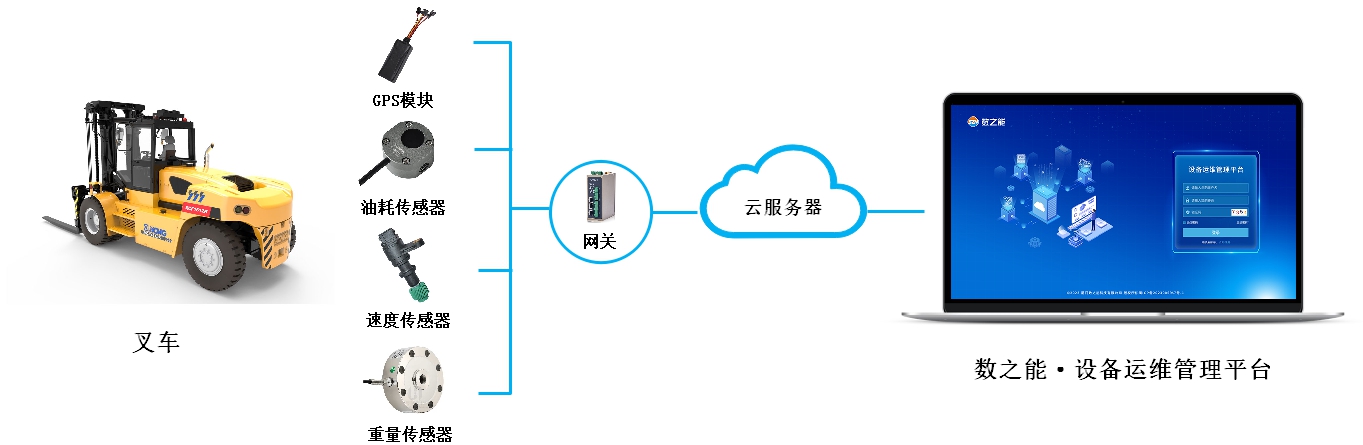 通過接入GPS 定位模塊、速度傳感器、油耗傳感器、重量傳感器等設備,實時采集位置、速度、油耗、載重等數據,數之能設備運維管理平臺可以實現對全國各地叉車的實時監控、可視化展示、故障告警、運維管理等功能,進而實現對叉車的全方位、實時化、智能化管理,不斷提高工作效率與管理水平,推動企業的高質量發展。