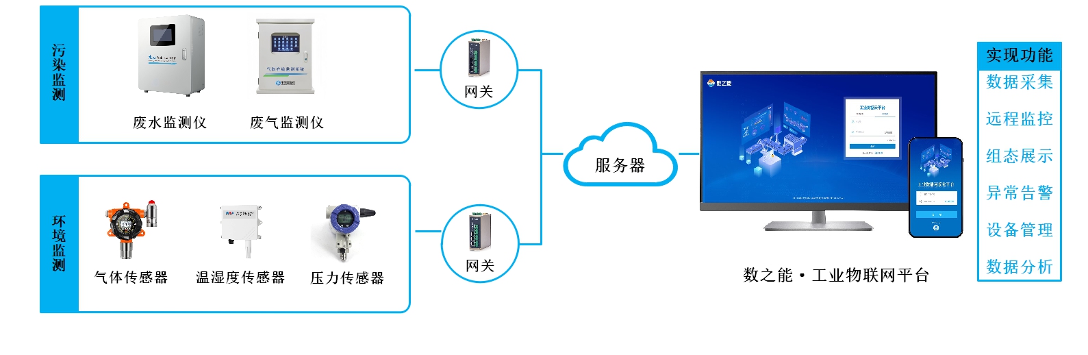 廠區多個排放口部署有監測儀器,要求實時采集監測廢水、廢氣數據,包括廢水(pH值、化學需氧量、重金屬離子等)和廢氣(二氧化硫、氮氧化物、顆粒物濃度等)。