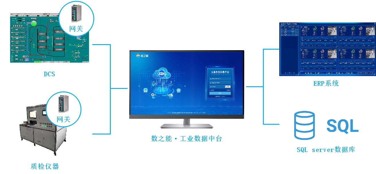 1、全面接入DCS系統、真空澆注機、固化烘箱、質檢儀器等設備,實時采集設備數據并實現協議轉換與標準化輸出,快速對接ERP系統和SQL數據庫中。